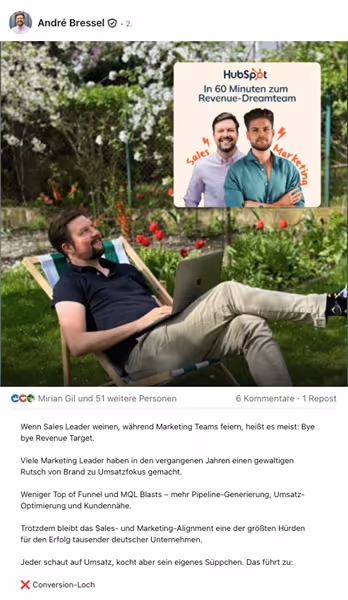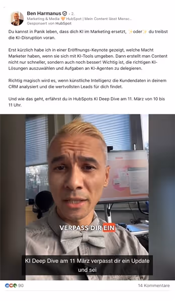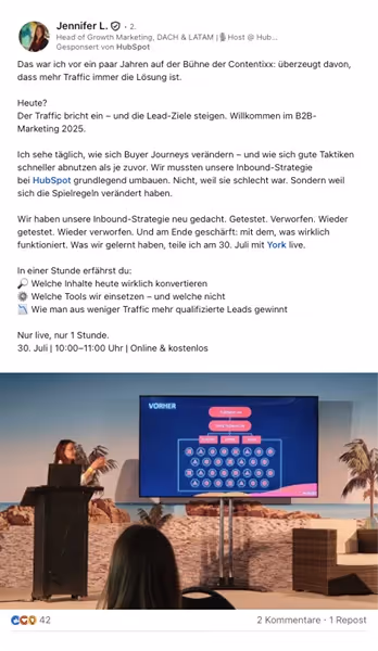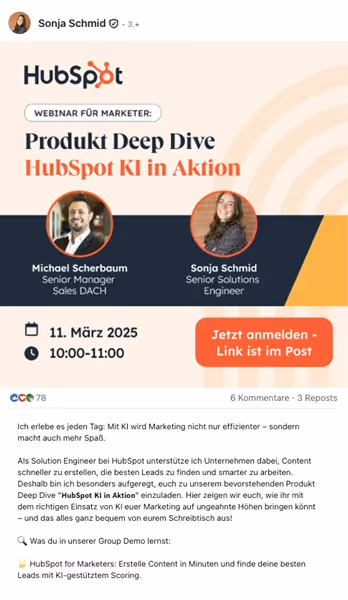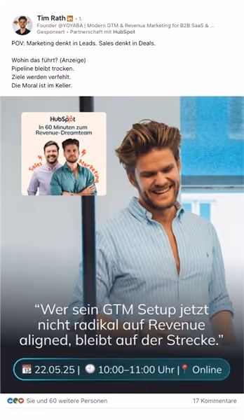 To drive high-quality webinar sign-ups at scale, HubSpot DACH and YOYABA developed a performance-focused Thought Leader Ads (TLA) strategy on LinkedIn. Instead of a fixed planning cycle, the team worked in agile sprints, launching, testing, and refining across six campaign phases (webinars) based on live performance data.